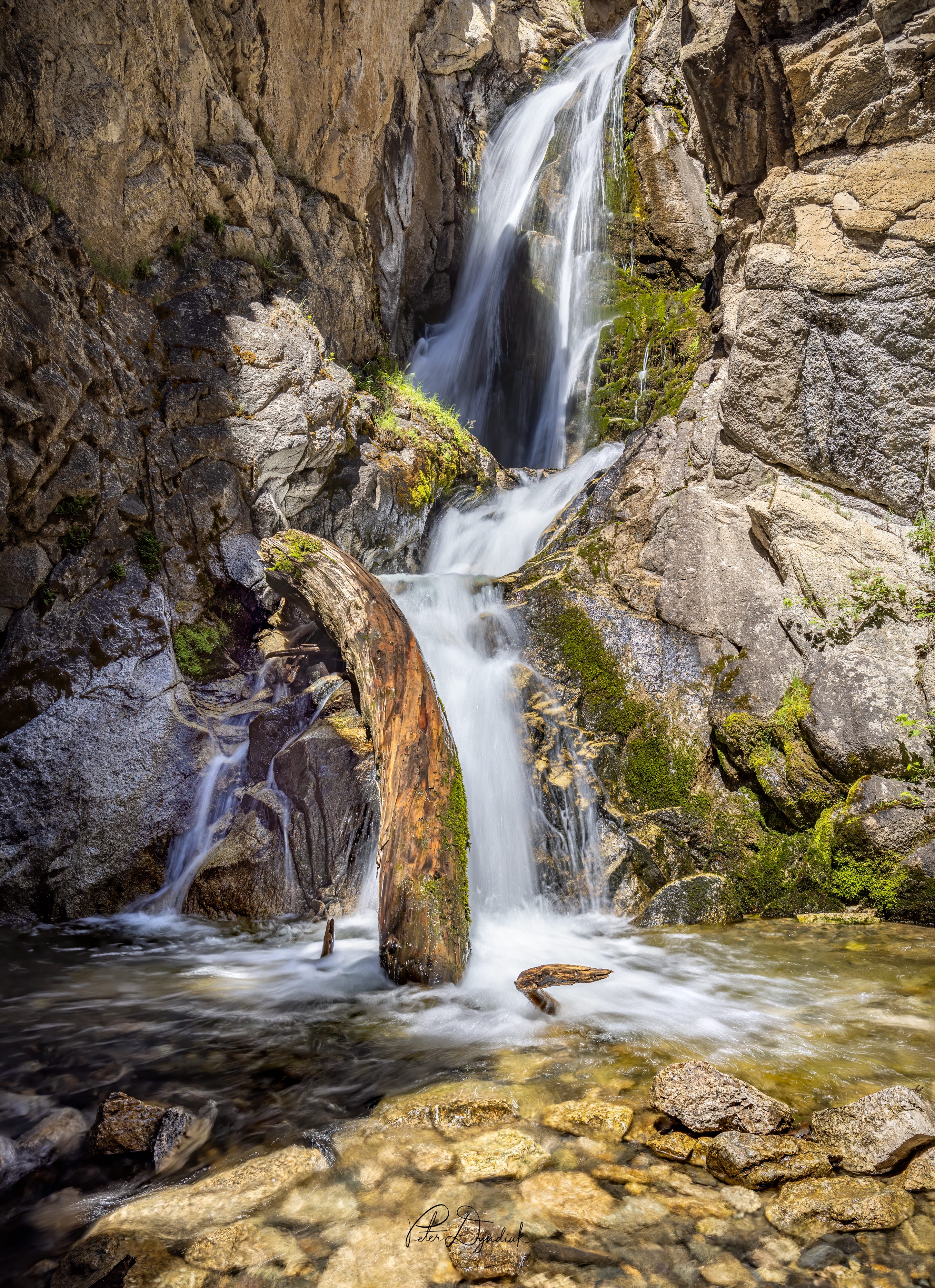 The next image is of a waterfall along Big Fall Creek, also in the Pioneer Mountains, Idaho. I have photographed this waterfall many times and always thought I could do better. It’s a difficult shot to get due to the harsh lighting and deep shadows caused by its location in a deep narrow gorge. Several images were taken to get enough “data” to build this version of the waterfall. After combining images to produce a single image that was as close to what I experience at the time, the result was finally what I had been looking for.